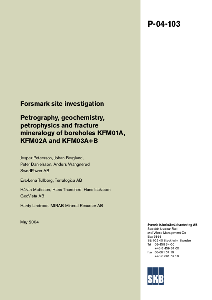 Petersson, Jesper; Berglund, Johan; Danielsson, Peter; Wängnerud, Anders; Tullborg, Eva-Lena; Mattsson, Håkan; Thunehed, Hans; Isaksson, Hans; Lindroos, Hardy