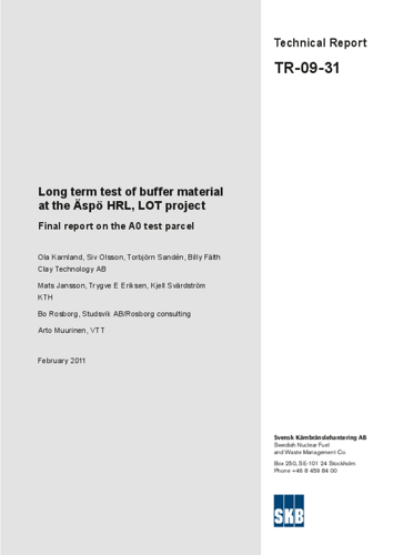 Karnland, Ola; Olsson, Siv; Sandén, Torbjörn; Fälth, Billy; Jansson, Mats; Eriksen, Trygve E; Svärdström, Kjell; Rosborg, Bo; Muurinen, Arto