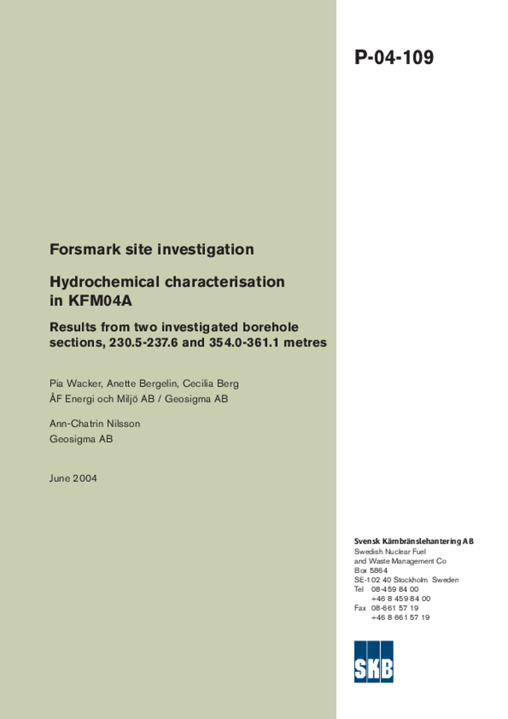 Forsmark site investigation. Hydrochemical characterisation in KFM04A. Results from two investigated borehole sections, 230.5-237.6 and 354.0-361.1 metres