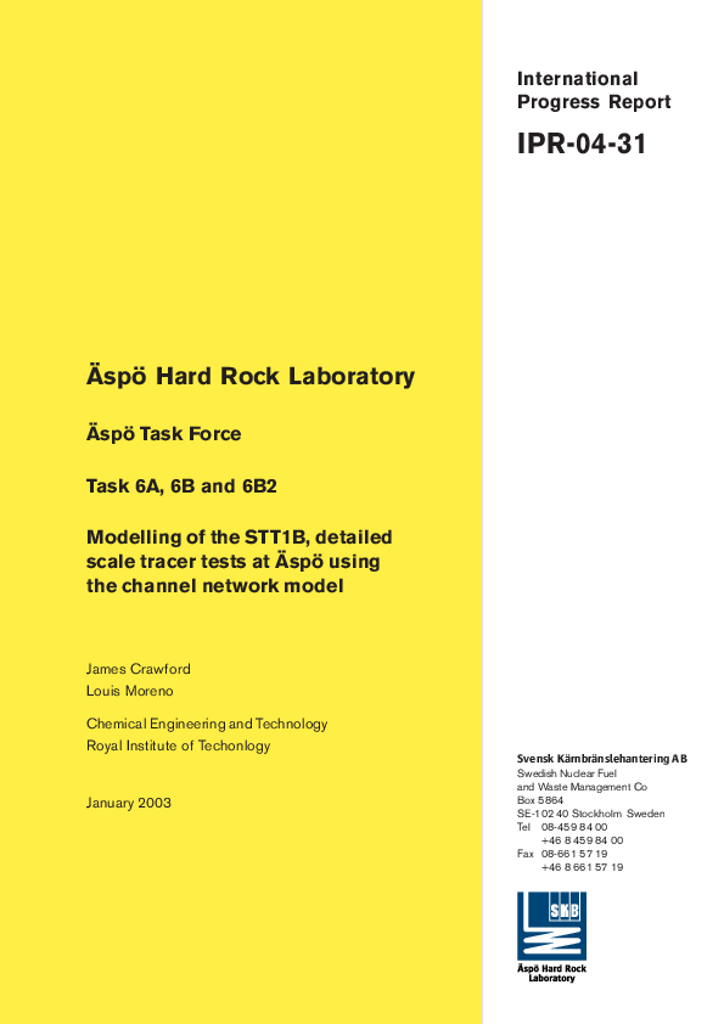 Äspö Hard Rock Laboratory. Äspö Task Force. Task 6A, 6B and 6B2. Modelling of the STT1B, detailed scale tracer tests at Äspö using the channel network model