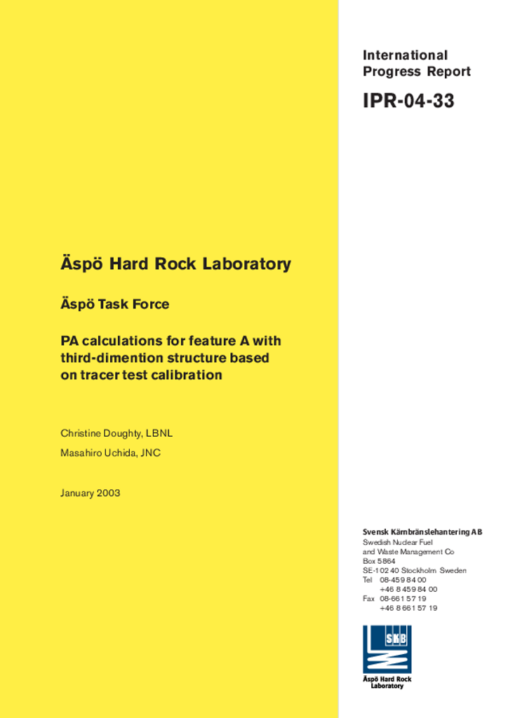 Äspö Hard Rock Laboratory. Äspö Task Force. PA calculations for feature A with third-dimension structure based on tracer test calibration