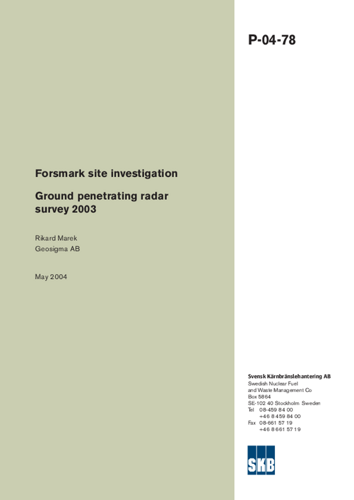 Forsmark site investigation. Ground penetrating radar survey 2003