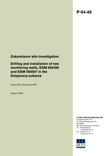 Oskarshamn site investigation. Drilling and installation of two monitoring wells, SSM 000006 and SSM 000007 in the Simpevarp subarea