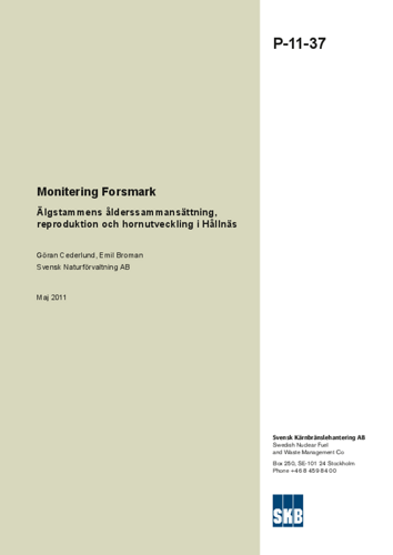 Monitering Forsmark. Älgstammens ålderssammansättning, reproduktion och hornutveckling i Hållnäs