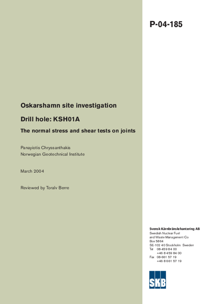Oskarshamn site investigation. Drill hole: KSH01A. The normal stress and shear tests on joints