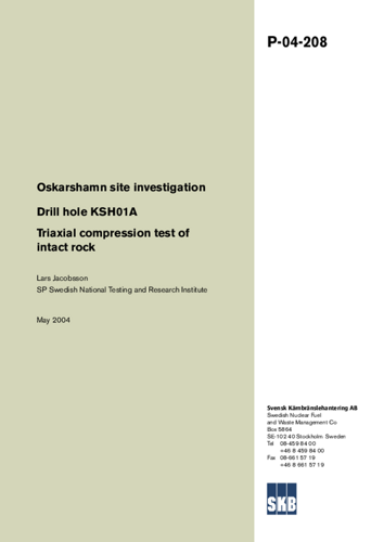 Oskarshamn site investigation. Drill hole KSH01A. Triaxial compression test of intact rock
