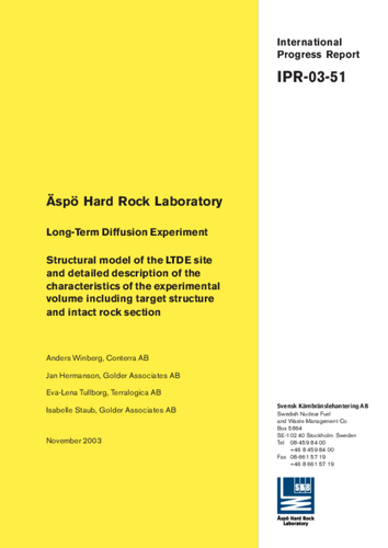 Äspö Hard Rock Laboratory. Long-Term Diffusion Experiment. Structural model of the LTDE site and detailed description of the characteristics of the experimental volume including target structure and intact rock section