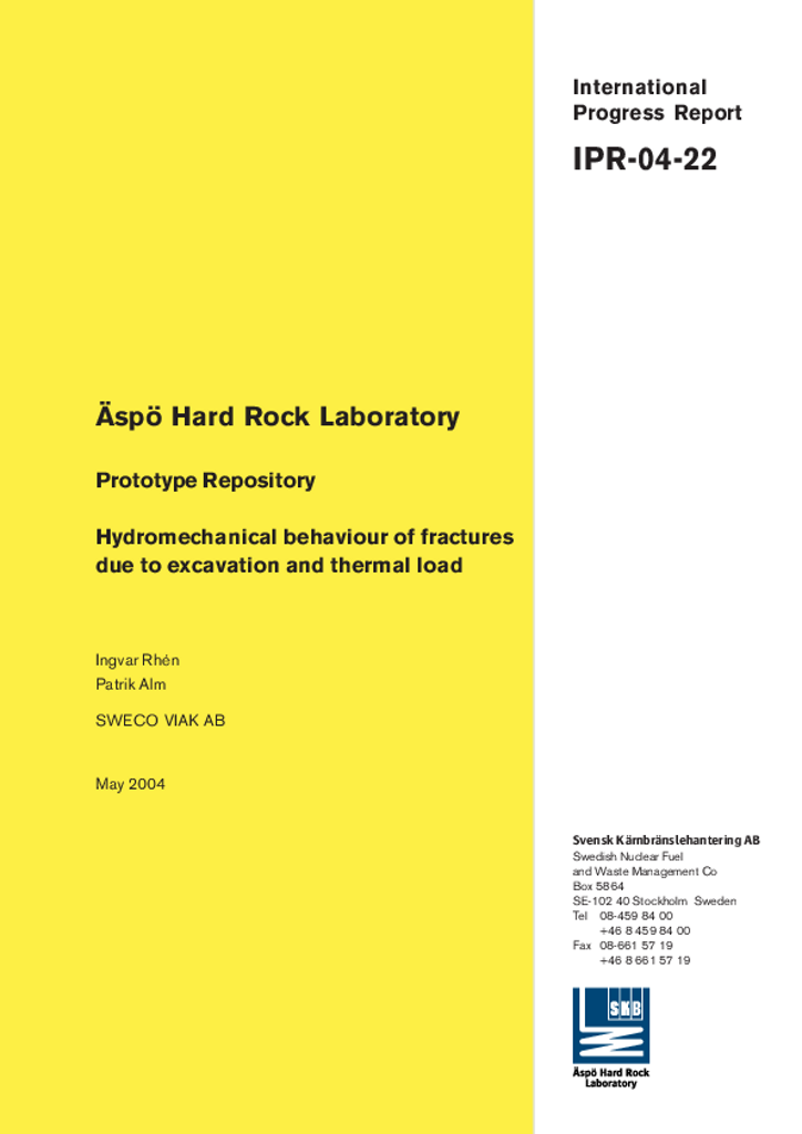 Äspö Hard Rock Laboratory. Prototype repository. Hydromechanical behaviour of fractures due to excavation and thermal load.