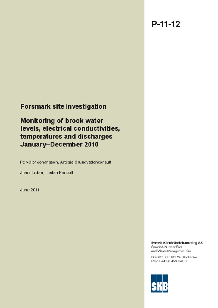 Forsmark site investigation. Monitoring of brook water levels, electrical conductivities, temperatures and discharges January-December 2010