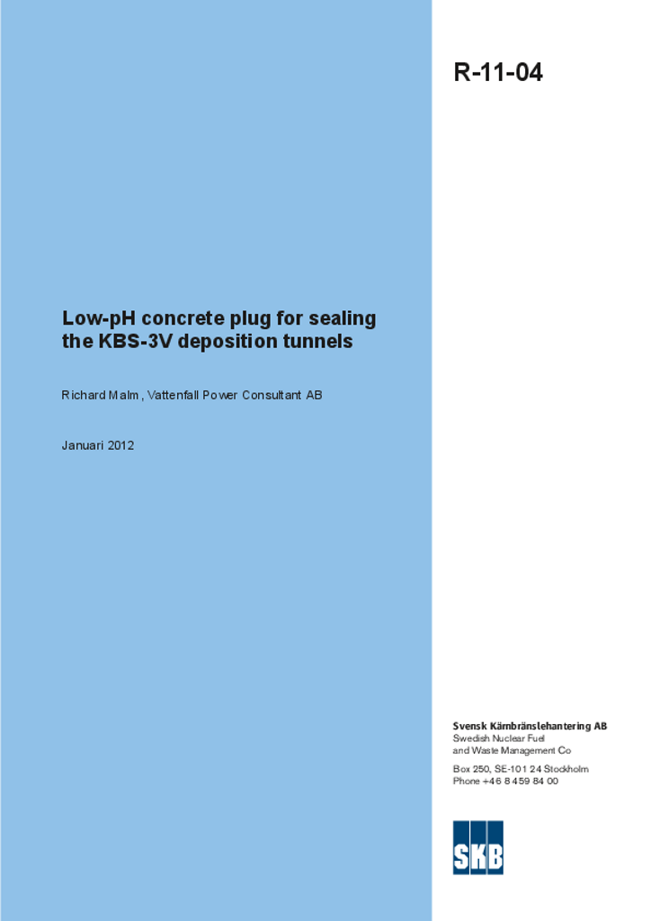 Low-pH concrete plug for sealing the KBS-3V deposition tunnels