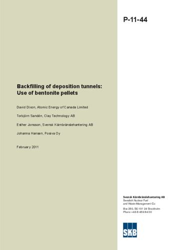 Backfilling of deposition tunnels: Use of bentonite pellets