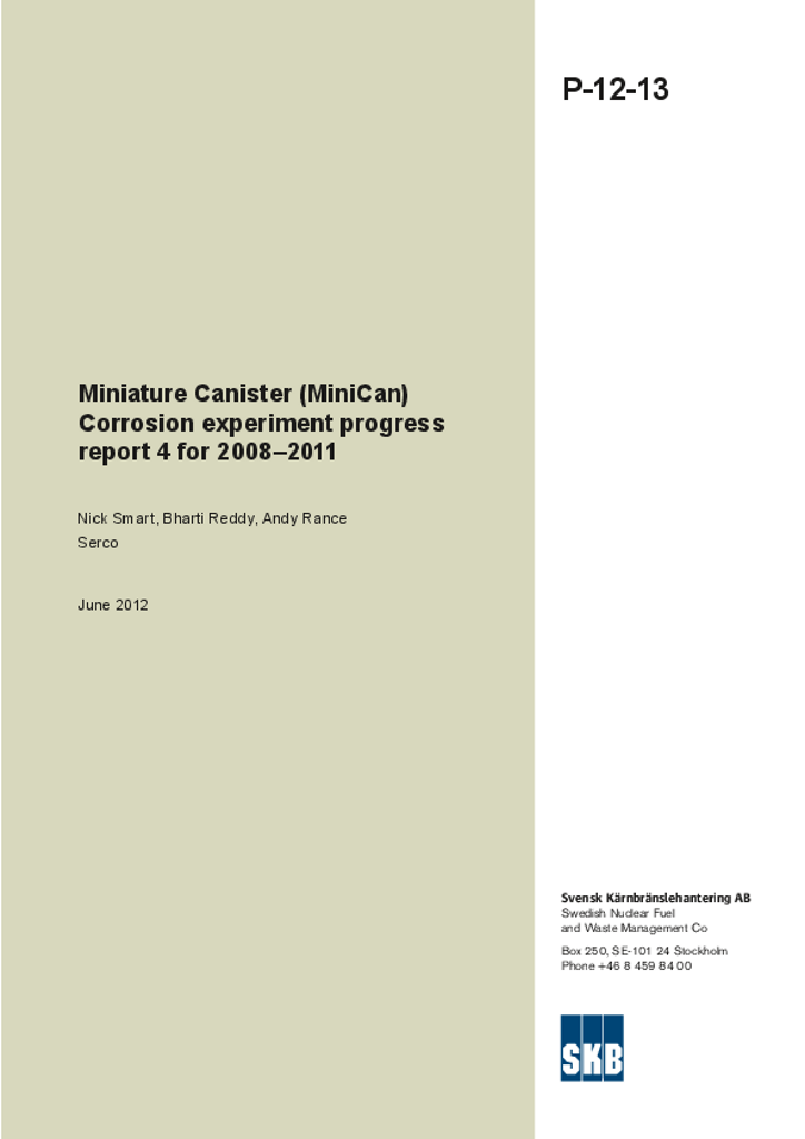 Miniature Canister (MiniCan). Corrosion experiment progress report 4 for 2008-2011