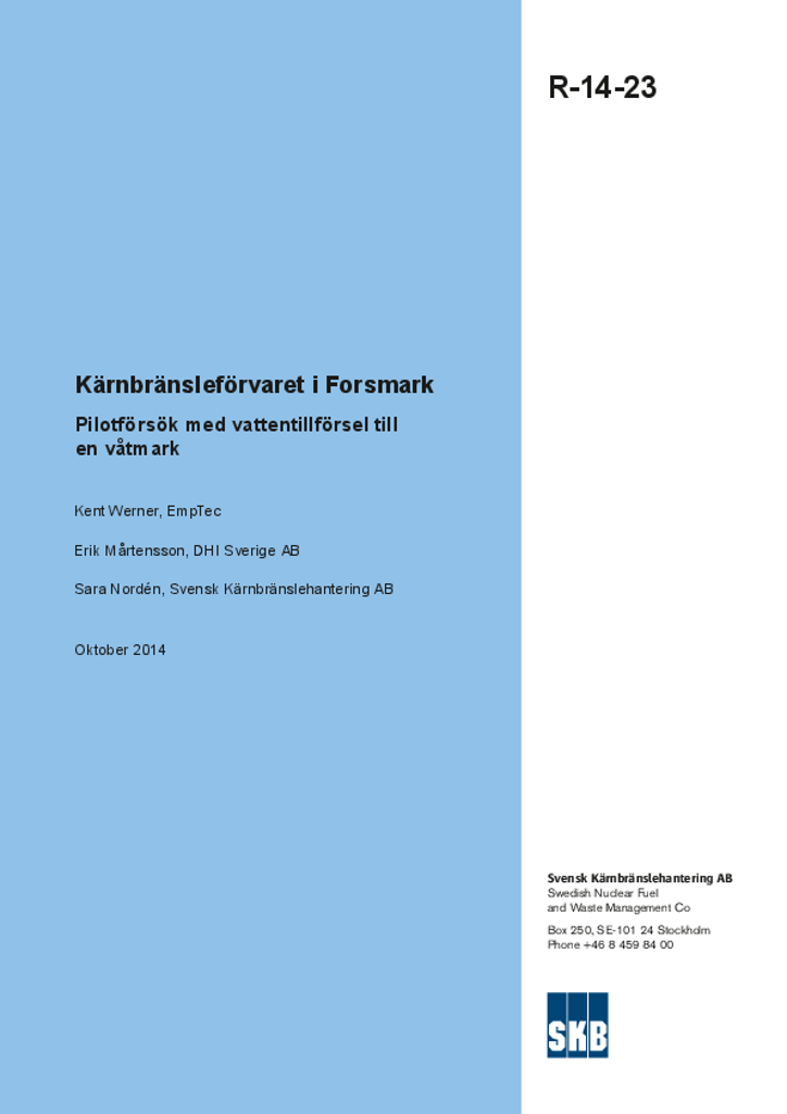 Kärnbränsleförvaret i Forsmark. Pilotförsök med vattentillförsel till en våtmark