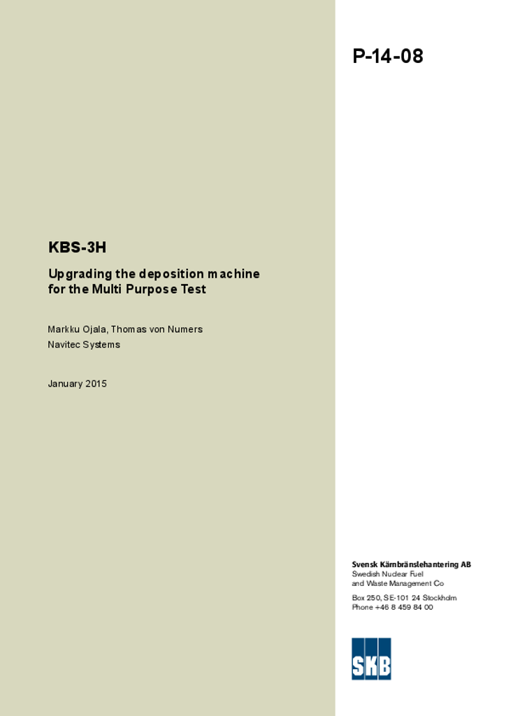 KBS-3H. Upgrading the deposition machine for the Multi Purpose Test