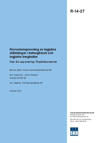 Korrosionsprovning av ingjutna stålstänger i betongblock och ingjutna bergbultar. Fem års exponering i Äspölaboratoriet. Uppdaterad 2016-03