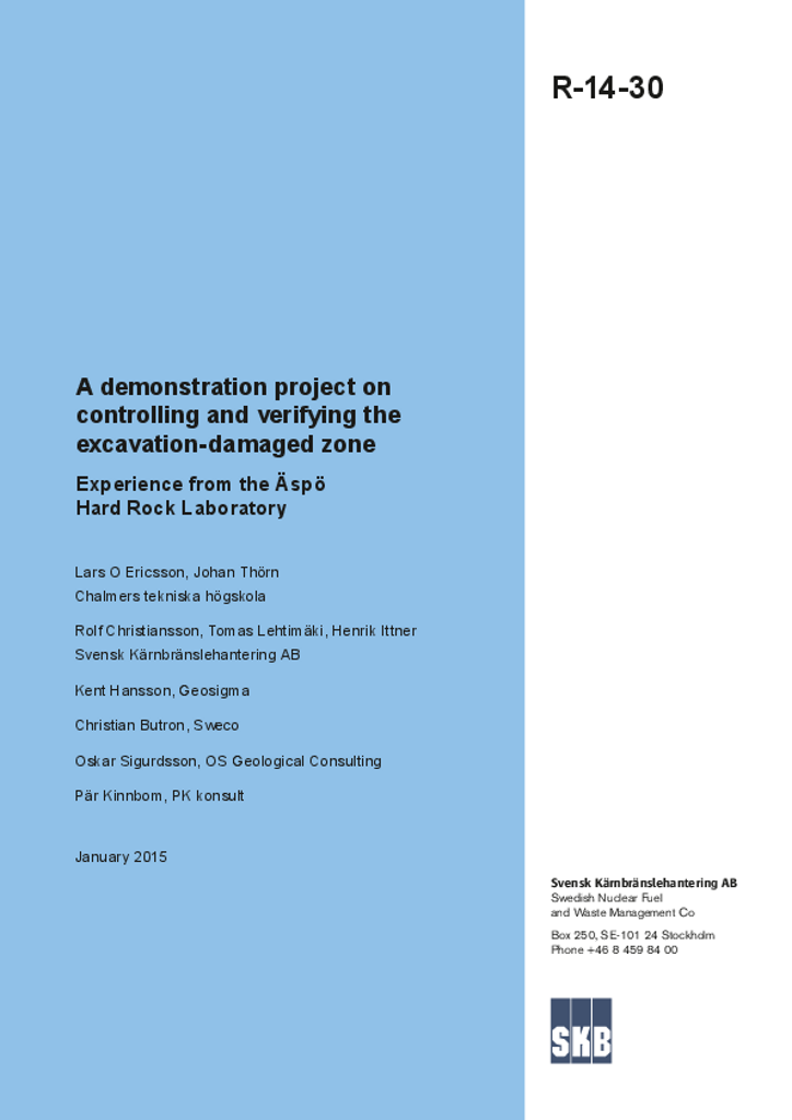 A demonstration project on controlling and verifying the excavation-damaged zone. Experience from the Äspö Hard Rock Laboratory