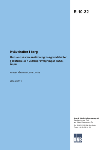 Kvävehalter i berg. Kunskapssammanställning bakgrundshalter. Fallstudie och vattenprovtagningar TASS, Äspö