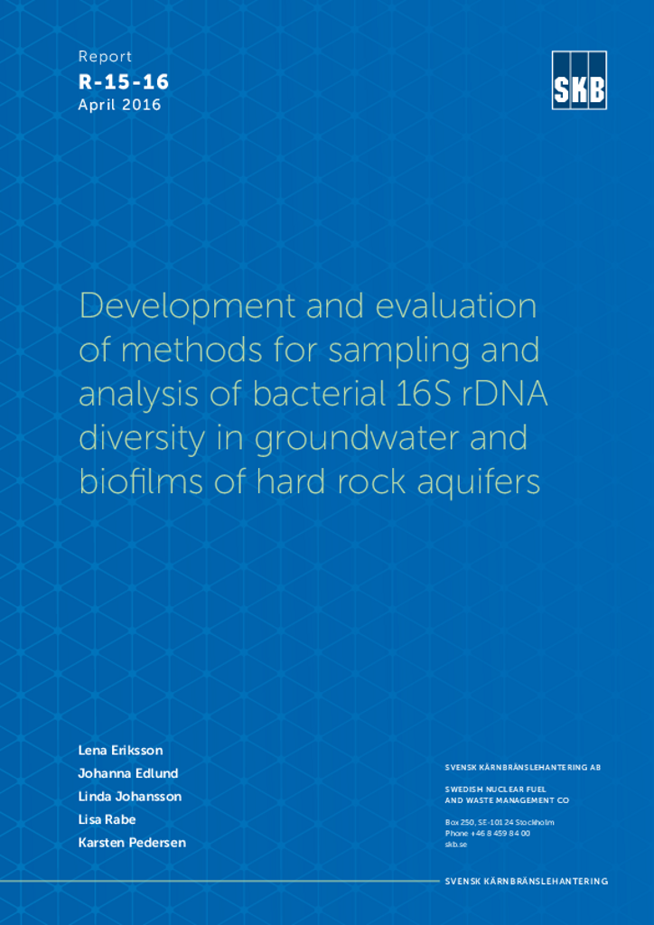 Development and evaluation of methods for sampling and analysis of bacterial 16S rDNA diversity in groundwater and biofilms of hard rock aquifers
