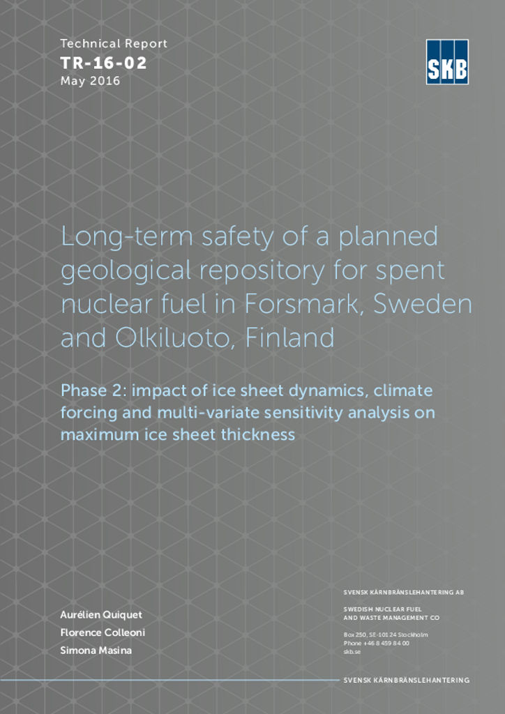 Long-term safety of a planned geological repository for spent nuclear fuel in Forsmark, Sweden and Olkiluoto, Finland. Phase 2: impact of ice sheet dynamics, climate forcing and multi-variate sensitivity analysis on maximum ice sheet thickness. Updated 2016-06