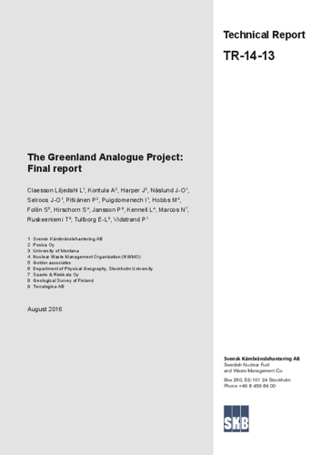 Claesson Liljedahl, L; Kontula, A; Harper, J; Näslund, J-O; Selroos, J-O; Pitkänen, P; Puigdomenech, I; Hobbs, M; Follin, S; Hirschorn, S; Jansson, P; Kennell, L; Marcos, N; Ruskeeniemi, T; Tullborg, E-L; Vidstrand, P