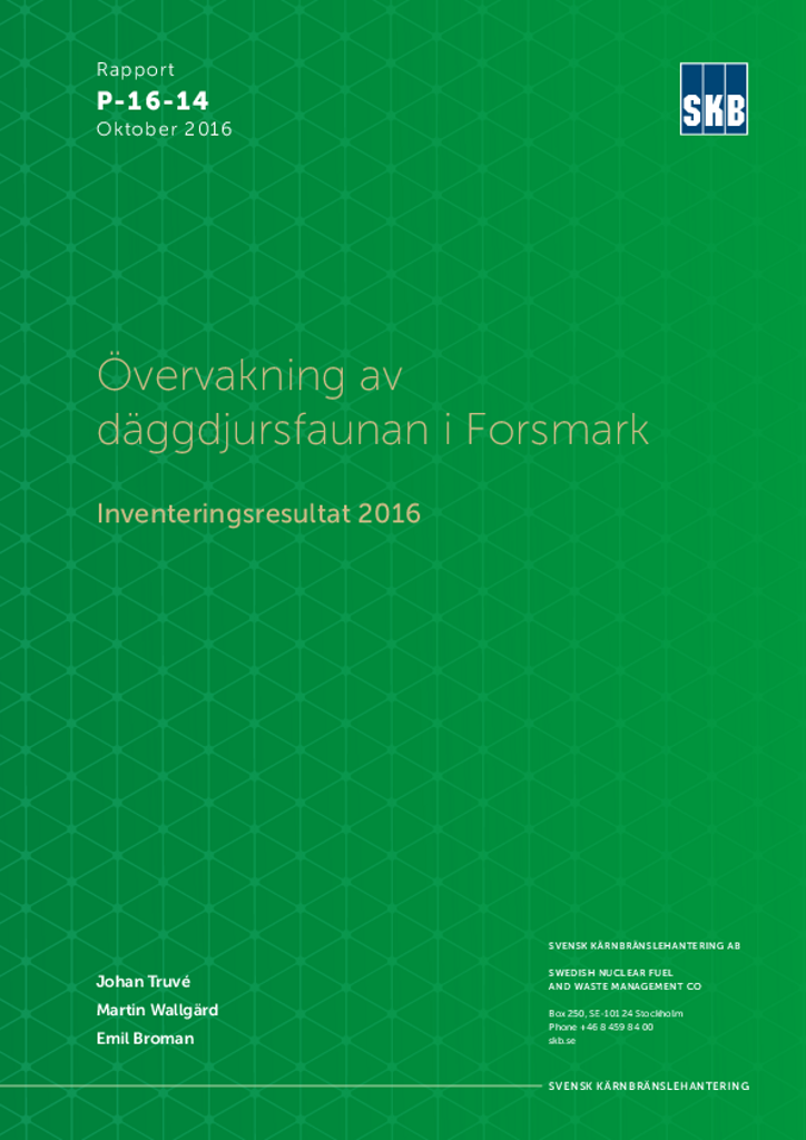 Övervakning av däggdjursfaunan i Forsmark. Inventeringsresultat 2016