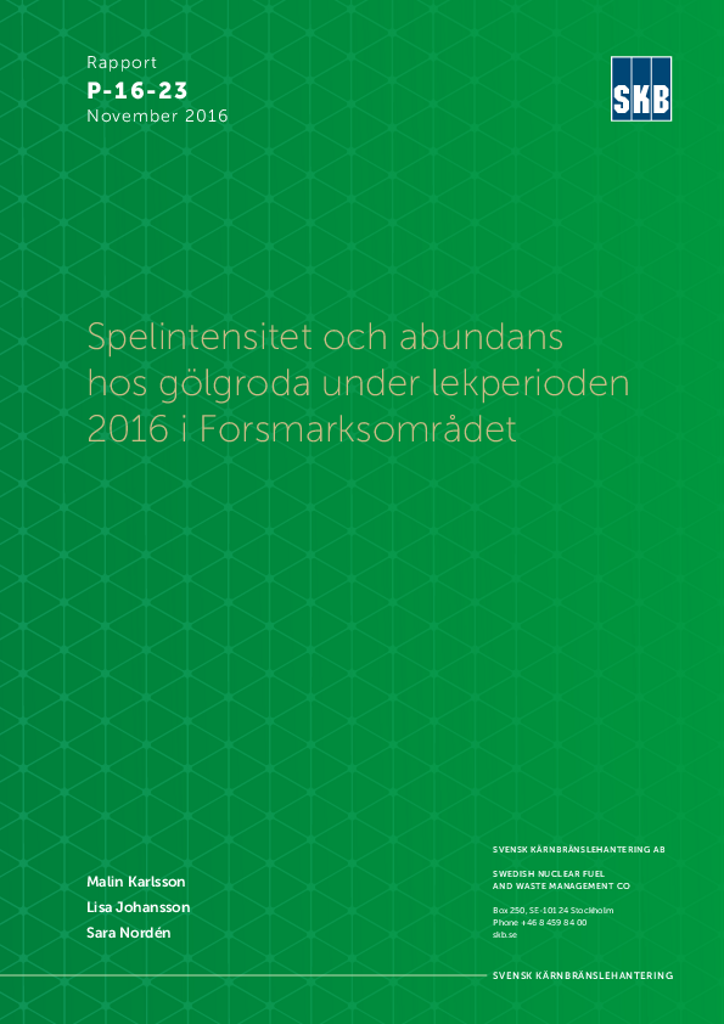 Spelintensitet och abundans hos gölgroda under lekperioden 2016 i Forsmarksområdet