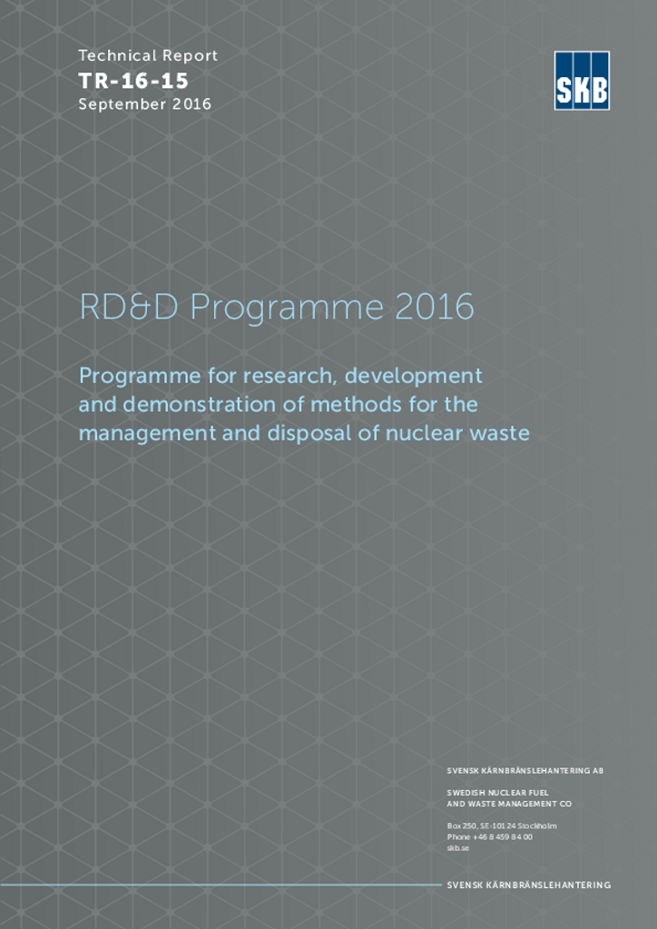 RD&D Programme 2016. Programme for research, development and demonstration of methods for the management and disposal of nuclear waste