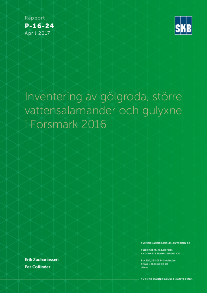 Inventering av gölgroda, större vattensalamander och gulyxne i Forsmark 2016