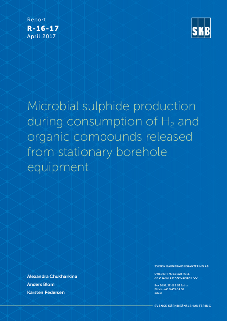 Microbial sulphide production during consumption of H2 and organic compounds released from stationary borehole equipment