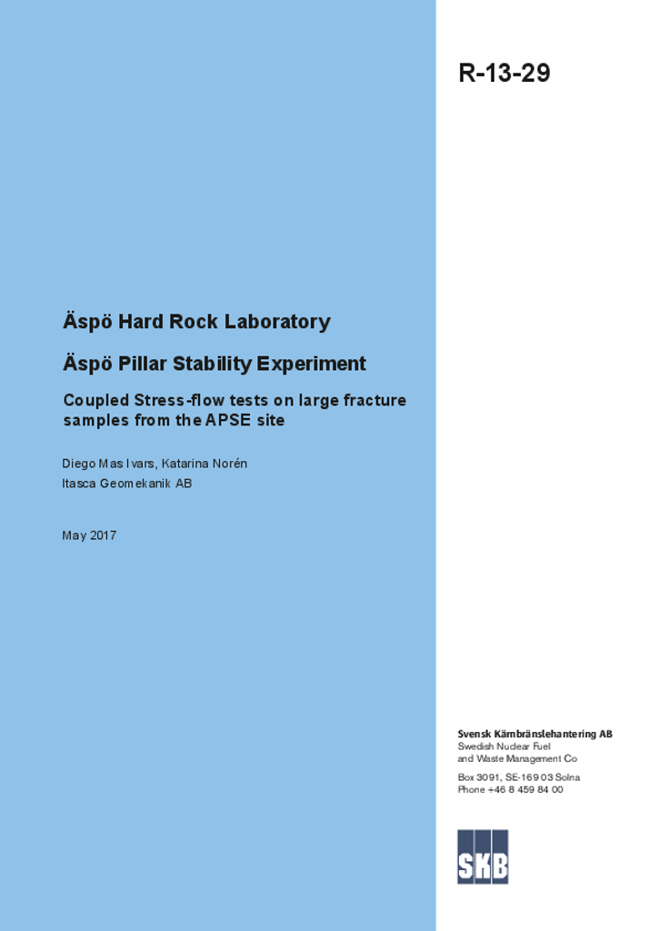 Äspö Hard Rock Laboratory. Äspö Pillar Stability Experiment. Coupled Stress-flow tests on large fracture samples from the APSE site