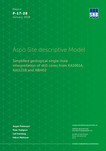Äspö Site descriptive Model. Simplified geological single-hole interpretation of drill cores from KA1061A, KA1131B and KBH02