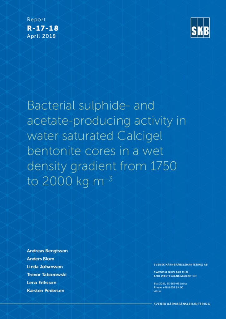 Bacterial sulphide- and acetate-producing activity in water saturated Calcigel bentonite cores in a wet density gradient from 1 750 to 2 000 kg m−3