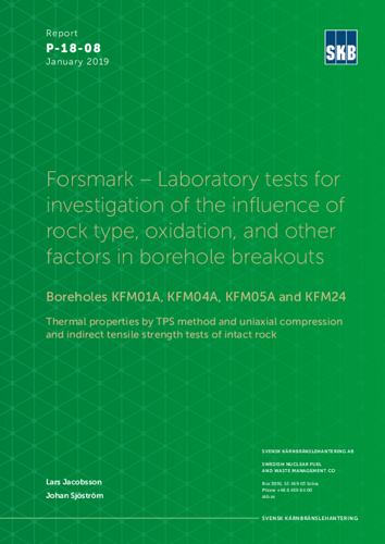 Forsmark - Laboratory tests for investigation of the influence of rock type, oxidation, and other factors in borehole breakouts. Boreholes KFM01A, KFM04A, KFM05A and KFM24. Thermal properties by TPS method and uniaxial compression and indirect tensile strength tests of intact rock. Updated 2020-10