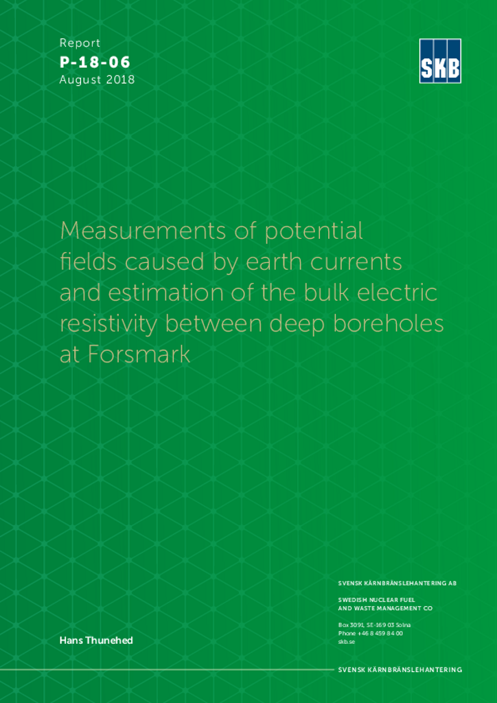 Measurements of potential fields caused by earth currents and estimation of the bulk electric resistivity between deep boreholes at Forsmark