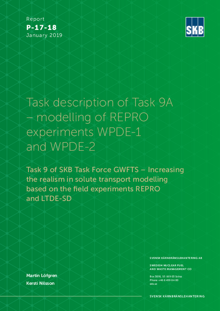 Task description of Task 9A - modelling of REPRO experiments WPDE-1 and WPDE-2. Task 9 of SKB Task Force GWFTS - Increasing the realism in solute transport modelling based on the field experiments REPRO and LTDE-SD