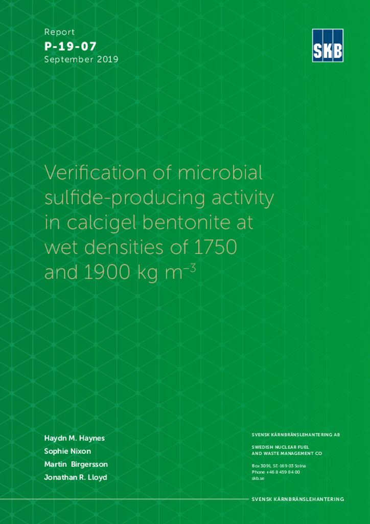 Verification of microbial sulfide-producing activity in calcigel bentonite at wet densities of 1 750 and 1 900 kg m-3