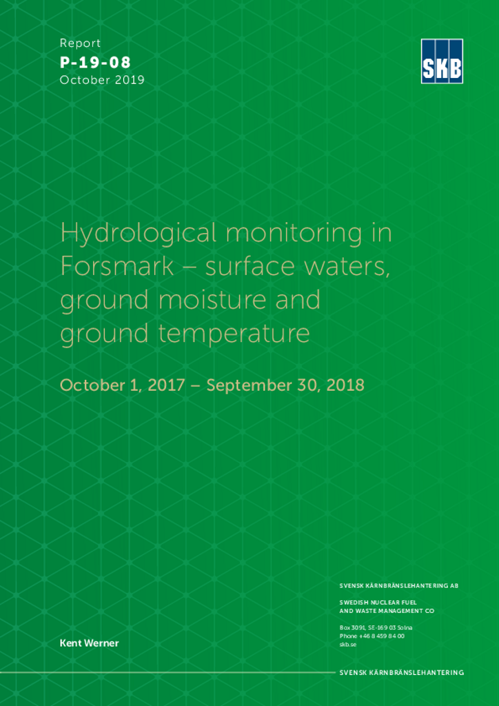 Hydrological monitoring in Forsmark - surface waters, ground moisture and ground temperature. October 1, 2017 - September 30, 2018