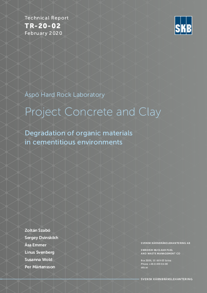 Äspö Hard Rock Laboratory. Project Concrete and Clay Degradation of organic materials. in cementitious environments