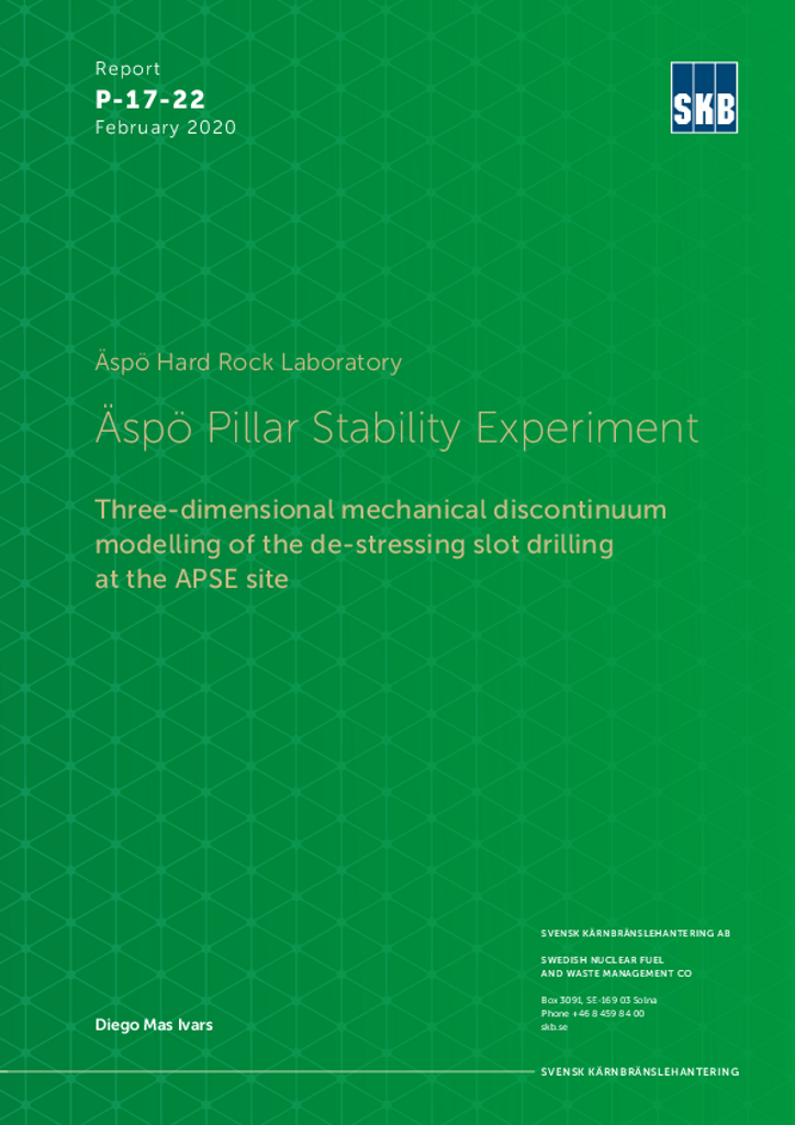 Äspö Hard Rock Laboratory. Äspö Pillar Stability Experiment. Three-dimensional mechanical discontinuum modelling of the de-stressing slot drilling at the APSE site