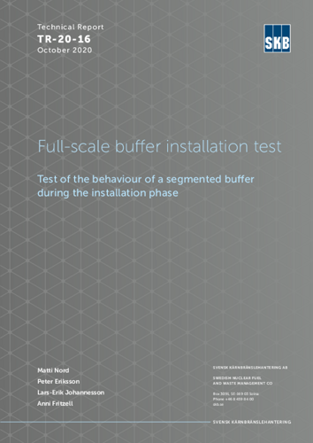 Full-scale buffer installation test. Test of the behaviour of a segmented buffer during the installation phase