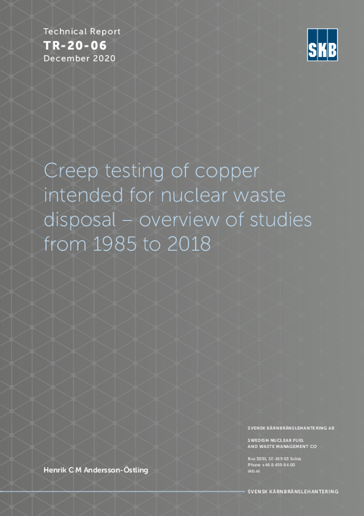 Creep testing of copper intended for nuclear waste disposal - overview of studies from 1985 to 2018