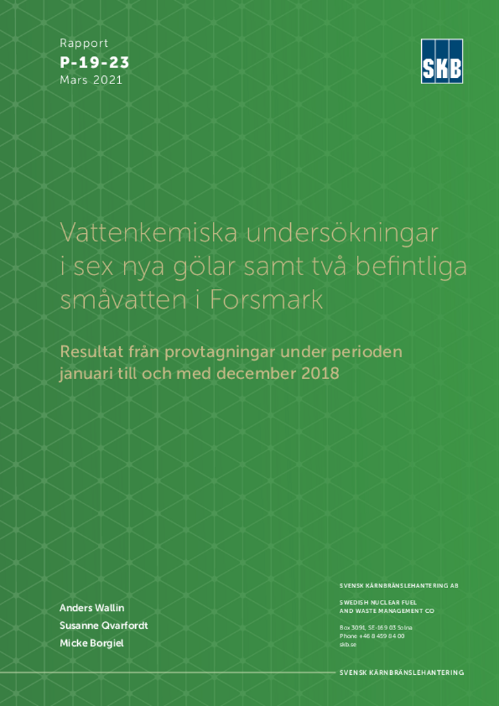 Vattenkemiska undersökningar i sex nya gölar samt två befintliga småvatten i Forsmark. Resultat från provtagningar under perioden januari till och med december 2018