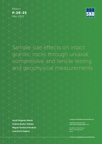 Sample size effects on intact granitic rocks through uniaxial compressive and tensile testing and geophysical measurements