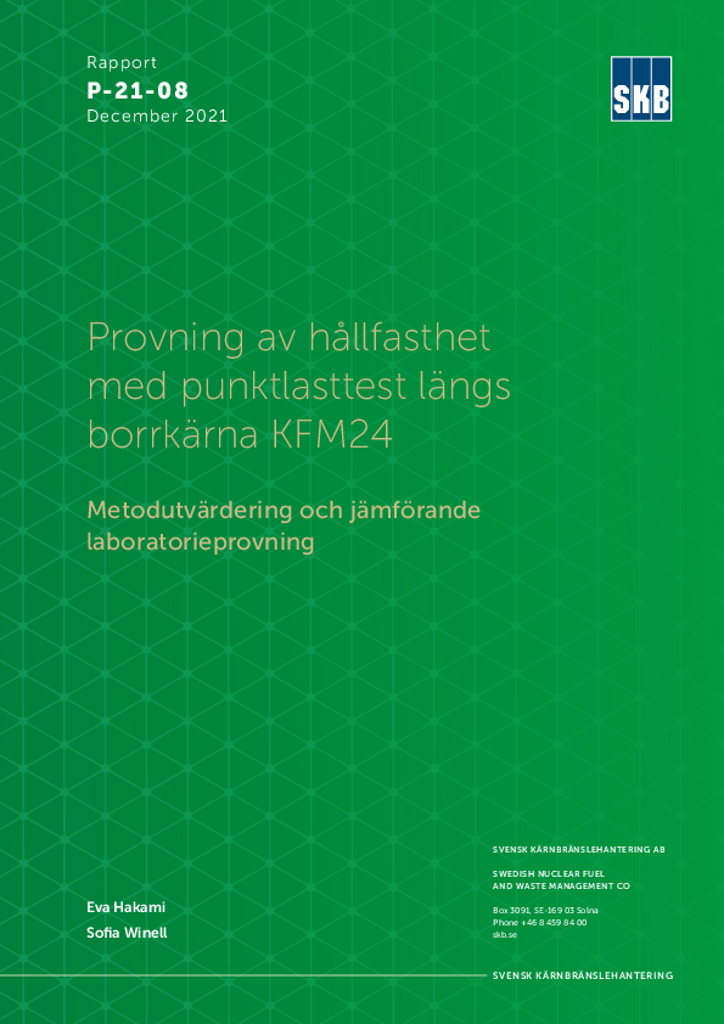 Provning av hållfasthet med punktlasttest längs borrkärna KFM24. Metodutvärdering och jämförande laboratorieprovning