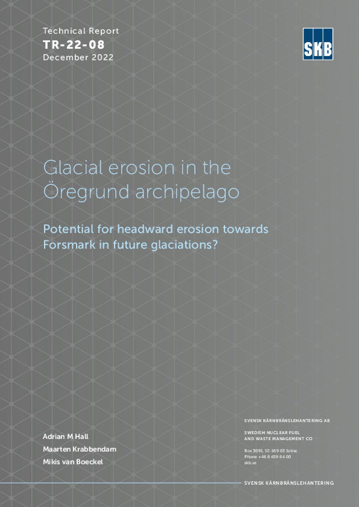 Glacial erosion in the Öregrund archipelago. Potential for headward erosion towards Forsmark in future glaciations?