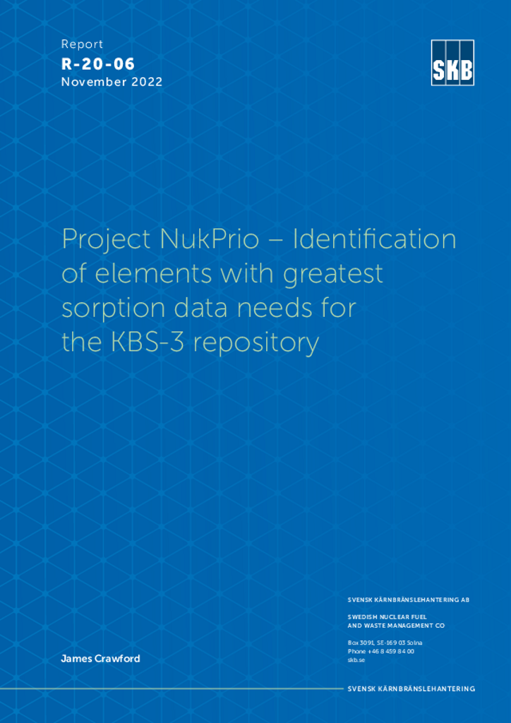 Project NukPrio - Identification of elements with greatest sorption data needs for the KBS-3 repository