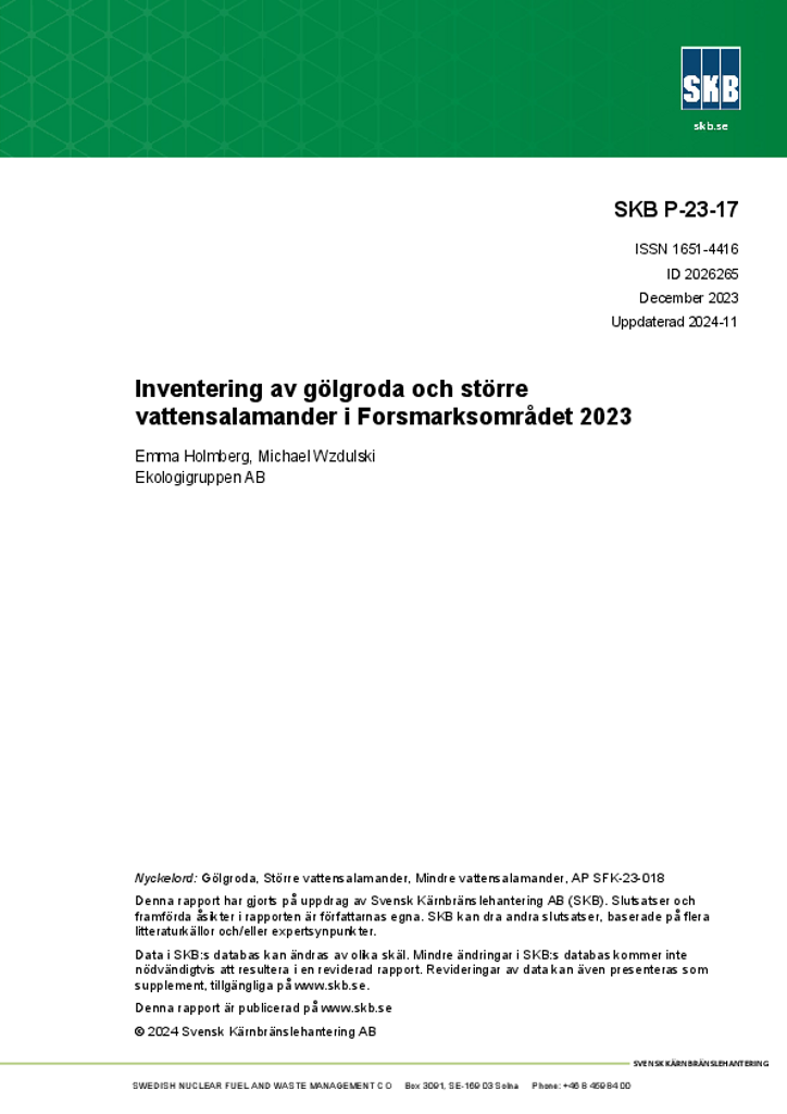 Inventering av gölgroda och större vattensalamander i Forsmarksområdet 2023. Uppdaterad 2024-11