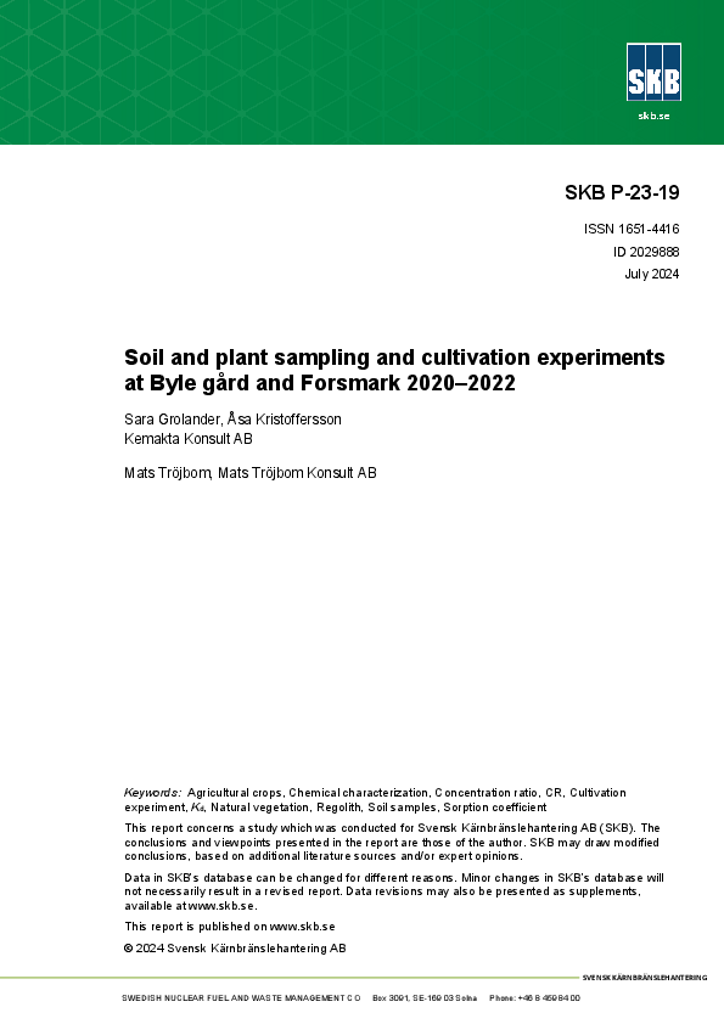 Soil and plant sampling and cultivation experiments at Byle gård and Forsmark 2020-2022
