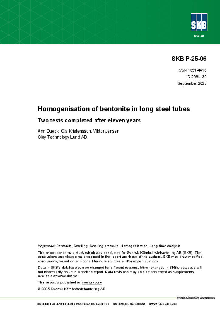Homogenisation of bentonite in long steel tubes. Two tests completed after eleven years