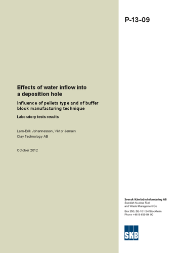 Effects of water inflow into a deposition hole. Influence of pellets type and of buffer block manufacturing technique. Laboratory tests results